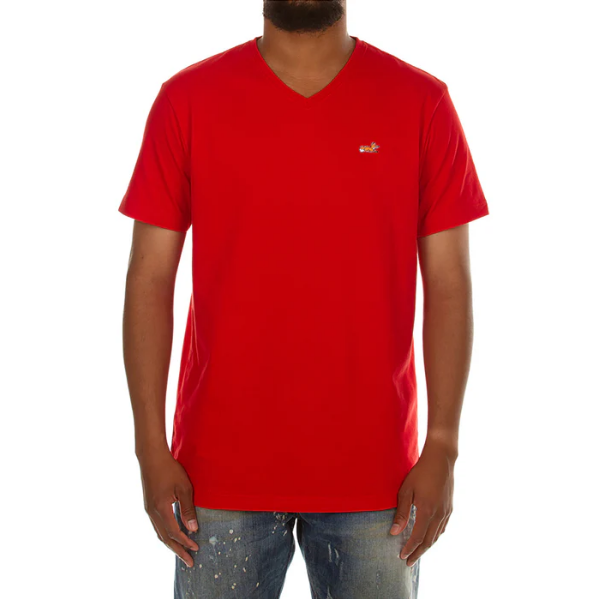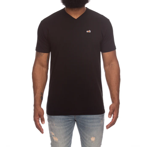 SHORT SLEEVE NECK KNIT TEE WITH SNOBBY APPLIQUE